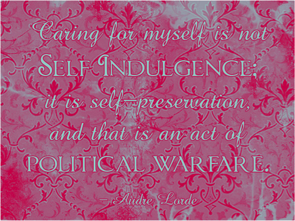 In the words of the great Audre Lorde, “caring for myself is not self-indulgence, it is self-preservation and that is an act of political warfare.”